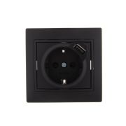 Розетка 1-м СП Mira 16А с заземл. + USB разъем черн. бархат LEZARD 701-4242-181