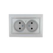 Розетка 2-м СП Mira 16А IP20 без заземл. со вставкой керамика сер. метал. LEZARD 701-1010-128